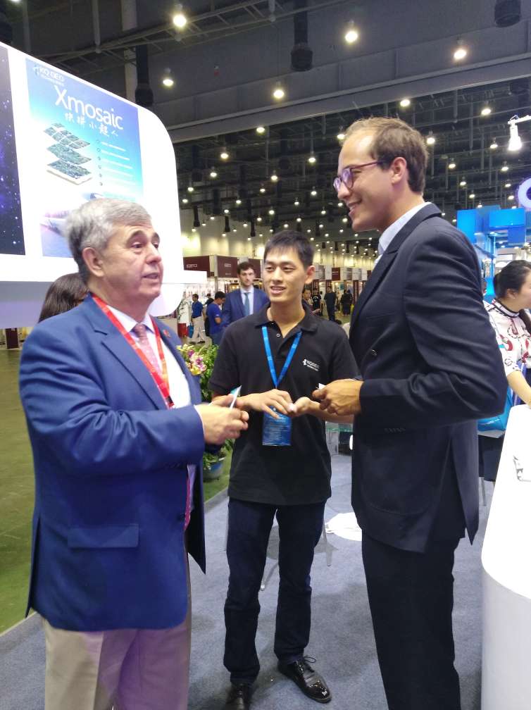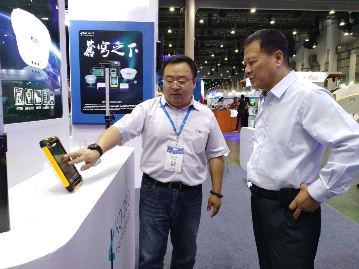 國家測(cè)繪局副局長(zhǎng)宋超智(右)參觀蒼穹數(shù)碼展臺(tái)