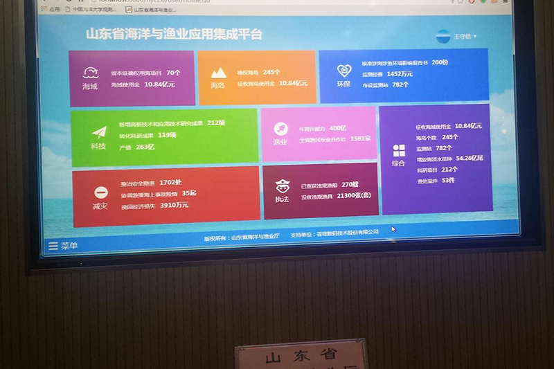 由蒼穹數碼技術股份有限公司承建的山東省海洋與漁業(yè)應用集成平臺作為山東省海洋與漁業(yè)廳主要信息化建設成果在會上做了匯報,并展示了該平臺的日常辦公、單點登錄、決策支持三個版塊,取得了相關領導的一致認可。